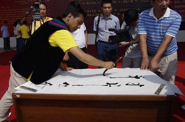 在激情燃烧的火把节期间,凉山彝学界喜事多,好事多,作为第六届中国•凉山彝族国际火把节重要活动之一的“中国凉山彝州论坛——古彝文化探源国际学术研讨会”刚刚闭幕,8月6日,为隆重庆祝《彝文规范方案》颁布实施三十周年的“彝文手机杯”彝文书法大赛在西昌民族风情园凉山州文学艺术创作中心火热进行。