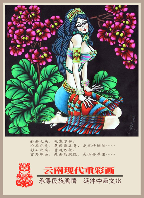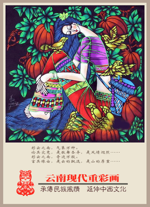 云南现代重彩画是20世纪80年代初由丁绍光、蒋铁峰等一批云南中年画家研创的。他们以中国画的线条造型,应用中国画所没有的而西方现代绘画中重醒目的斑澜色彩给画面注入了勃勃生机和绚丽色彩,给人一种赏心悦目之感,它的内容大多是反映云南优美的自然风光,少数民族风情和历史文化,具有浓郁的民族的地方特色。