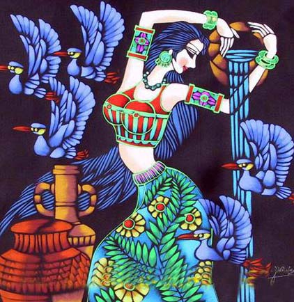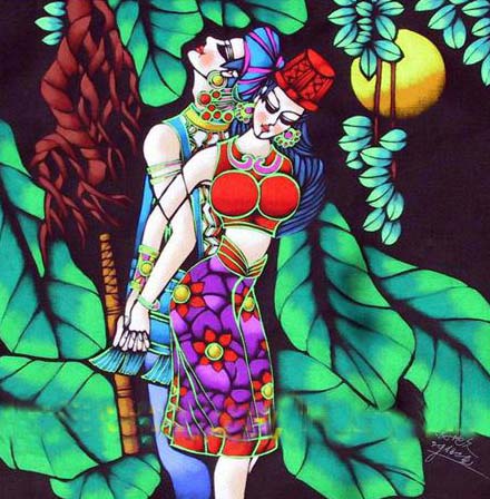 它将东西方绘画语言、古今技法熔为一炉,具有极强的透视感。画面上丰富艳丽的色彩和夸张与写实结合的人物实体,给人一种梦幻神奇、似懂非懂的感觉,具有较强的美感和装饰性。