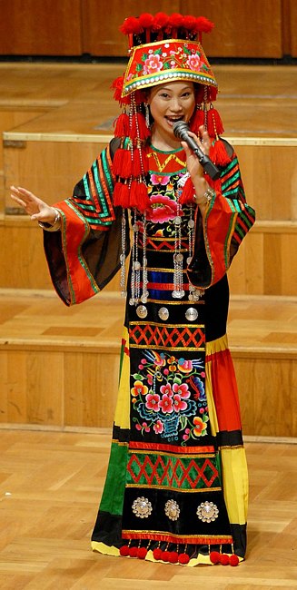 值得回忆的是2007年3月13日,在中国驻匈牙利大使馆、匈牙利德布勒森大学音乐学院、匈牙利罗兰大学孔子学院、凤凰卫视欧洲台等单位的大力支持下,我在匈牙利德布勒森市德布勒森大学音乐学院音乐大厅举办“彝族歌唱家王美玉女士个人演唱会”。本次演唱会是我继1999年12月在云南省红河州举办的“迎澳门回归王美玉女士独唱音乐会”之后,举办的又一场个人音乐会,是中国访问匈牙利学者的首场个人演唱会。我在现场,我为中匈观众演唱了10首民族经典音乐作品,其中有2首耳熟能详的中国歌剧《清粼粼的水来蓝莹莹的天》、《恨似高山仇似海》选曲以及2首普契尼歌剧《贾尼斯基基》的咏叹调《我亲爱的爸爸》和《托斯卡》的咏叹调《献身艺术,献身爱情》,最后,还加演了一首脍炙人口的民族歌曲《大地飞歌》。演唱会现场气氛热烈,应观众经久不息的掌声多次谢幕。我通过自己多年的演唱和教学经验,已有了较深厚的功底,灵动的表现力,演唱活泼大方、激情奔放,感情充沛,不仅展现了中国民歌的独特意境和魅力,也体现了中国民歌与西方文化珠联璧合。演唱会也做了很多创新,首先,演唱会内容丰富,既有云南的民歌《小河淌水》和少数民族风格的歌曲,哈尼族的《捉泥鳅》、傣族的《有一个美丽的地方》和彝族的《月光恋》、《红河的月亮》、《兄弟一条心》,又有中国歌剧选段,也有意大利歌剧选段,让观众耳目一新。其次在表现形式上,中国民乐的独特风格与匈牙利音乐家的钢琴伴奏巧妙的融合,更印证了“音乐无国界”的真理,通过音乐的表现让中匈两国的音乐家更好的交流。特别是哈尼族的《撮泥鳅》用叮当作响的银饰,载歌载舞及哈尼族母语表现哈尼姑娘在田间戏耍的情景让人耳新悦目,在音乐效果上,给人一种既神秘,又诙谐的音乐景象;彝族的《月光恋》则表现以月光下彝族男女用口弦、四弦,用委婉的歌声及美妙的旋律表达爱情的场景,听着它让人感到仿佛进入了夜晚幽静的树林中和心爱的人一起享受美好谈情说爱的时光,当时的现场鸦雀无声,都沉浸在这美妙的旋律中。当歌声结束时,全场爆发出热烈的掌声,达到了连谢四次幕的效果,以此可看出欧洲观众的修养和音乐素质及对艺术追求的境界,那时的我,真正的感到做一个演唱者在舞台上手人尊重的;《红河的月亮》则是以彝族特有的旋律风格和高难度的演唱技巧打动了观众的心;《兄弟一条心》用高亢的歌声体现了彝族豪放的性格和对生活的热爱,其彝族服装,也突出了云南少数民族风味,另外,在演唱的风格和演唱技巧上,让他们不可思议,认为“中国的民歌太动听、太神奇,太伟大”,带给匈牙利观众独具特色的中国音乐文化的感受。在匈牙利电视台记者采访中曾问道“在中国,所有的歌曲都像你唱的旋律一样美妙吗?”,可想而知,我演唱的歌曲风格给他们留下了深刻的印象。还有在接受欧洲卫视中文台记者问时,他们问到“云南在我们看来是一个很神奇的地方,在你们那里,唱歌人的好嗓音都是从这座山喊到那座山,或是情歌对唱练出来的吗?”,这样的提问就表明是云南民歌带给人们的魅力!5hM彝族人网(彝人网)- 彝族文化网络博物馆