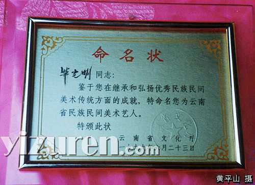 1999年,毕师傅以一手木工绝活赢得了云南省民间美术艺人的称号