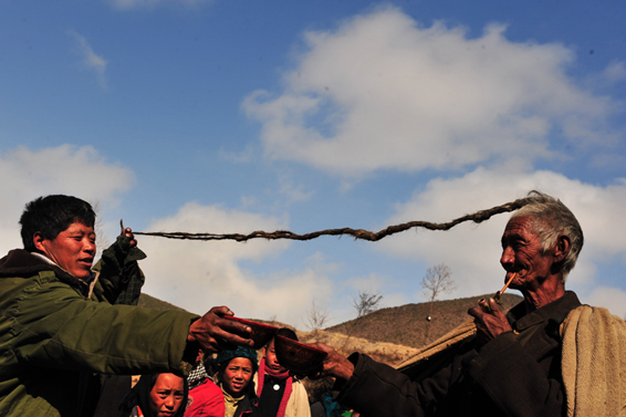 由于我们先去拍一个结婚仪式而耽误了时间,来到孤托村时,已经是上午10点过了。在孤托村也有一场婚礼,太阳高挂在头上的时候,新娘早就回娘家了,我们参加了婚礼后,由男方家组织的一个接受亲朋好友祝贺的聚会。i0f彝族人网(彝人网)- 彝族文化网络博物馆