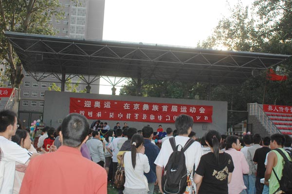 为迎接北京奥运会,宣传奥运理念,促进在京彝族积极支持、参与奥运会;同时也为推动在京彝族体育活动的广泛开展,提高在京彝族体育运动水平,增强在京彝族身体素质,促进彝族传统体育运动项目的推广与普及,由中央民族大学彝学研究所和彝族人网主办的“在京彝族首届运动会”于5月18日下午在中央民族大学体育场成功举行。以下为当天趣味项目比赛的图片。