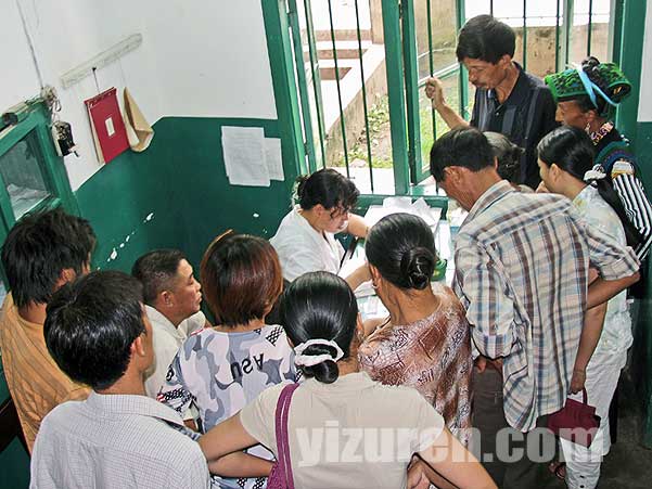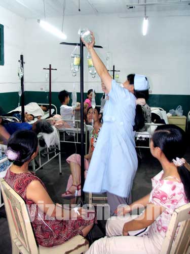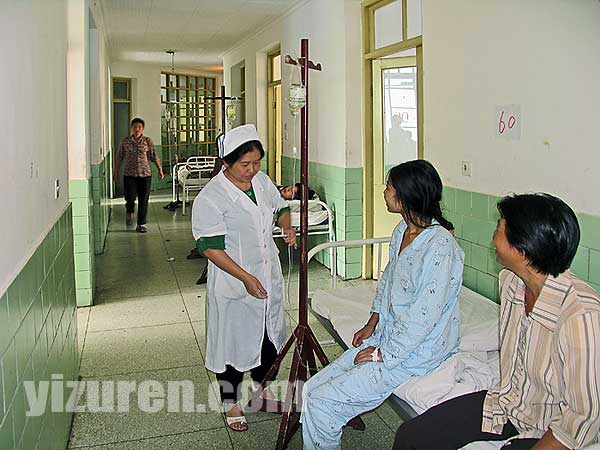 就是患了重病也没床位,只好三个病人围着一根输液架坐着。