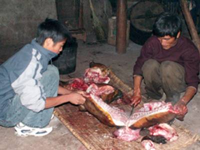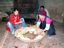10时许,我们到达了特波觉村岳父的兄弟(幺舅)家,今年,背年肉到幺舅家来真不少,我们去时已有三家人背到了,幺舅家忙里忙处忙透了,有些背年肉来的今天就在回去,就在给他们准备要带的东西和“卡把”。