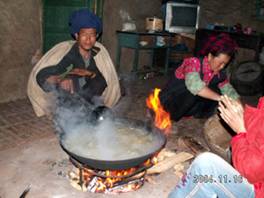 16日凌晨4点许,我还在睡意蒙胧中做一场快乐的“波良”梦,我就被妹妹阿则和阿良俩的“吱??吱??”烧火声中醒来,我起来一看,阿姨和叔叔、妹妹他们都早就起来了,约尔叔叔坐在火旁烧着火,两个妹妹分工做个苦荞饼和甜荞饼,阿姨从处面端来了水轻轻地拿倒进了锅里。请看我这个不知做什么的人给你们拍下来的图片吧!
