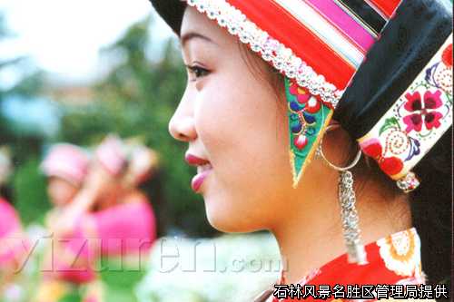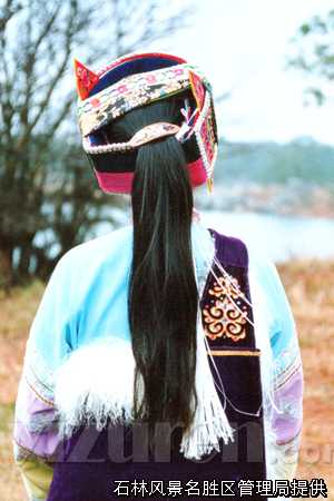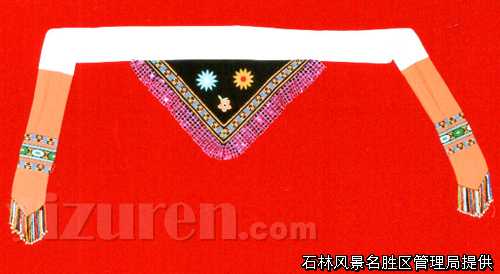 撒尼人是彝族的一个支系,主要分布于云南省石林县境内,撒尼人的服饰在彝族可是颇具特色的,撒尼人勤劳、善良、乐观及爱美的天性在服饰中得到了充分的体现,电影《阿诗玛》第一次让世人领略到绚丽多彩的彝族撒尼文化,影片中的撒尼服饰给人们留下了深刻的印象,也让很多人开始关注起这石林这片乐土上的彝族人和撒尼服饰。如今,时代在变迁,石林地区彝家人的生活蒸蒸日上,撒尼人更是将爱美的天性在服饰中淋漓尽致的表现了出来,当你走在每个撒尼村寨,你会在随处漂来的歌声中看到一个个漂亮的撒尼姑娘的身影,那精美的绣花包头、花围腰、精面料制作的花边衣,远远看去,象一朵鲜花绽放舞动,走近了,更让人为这亭亭玉立的着装惊叹和着迷。