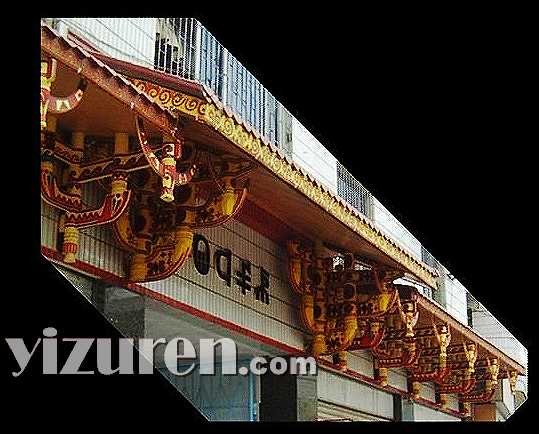 彝族木匠在民居建筑中,不以一尺、不用一钉建造出结构复杂、气势恢宏的穿逗落柱式“瓦板房”,被中国建筑学界称为“中国民居建筑史上的一大奇观”。在民居建筑的装饰中,彝族工匠充分运用了自古相传的木雕、漆绘艺术,充分传达出了彝民族独特的审美观和浓郁的民俗氛围。通常大门入口和屋檐是装饰的重点,常常在大门上作拱形造型,在门楣上刻有日月、鸟兽等图案;封檐的木板上刻有朴拙的锯齿形和简单的连续图案;屋脊中部及两端有起翘及起拱,山墙的悬鱼、无烟的挑拱、垂柱,屋内的梁枋、拱架等也雕刻有牛头、羊首(山羊头为镇宅之用,绵羊头为祈吉祥福瑞)、鸟兽、花草等线脚装饰和连续图案浮雕;室内的板壁与隔板上刻有对称均匀的连续四方雷纹及圆形花饰、动植物木雕花纹,小花格等;有的民居保持着原木的原色,有的则漆绘上色,极富建筑装饰效果。目前,传统民居的建筑样式和漆绘风格已经走进了城市,走向了现代。