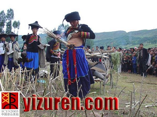 仪式开始:一、波喔事仆洛(为由邪神治病的病人在山上举行卸除神责仪式)