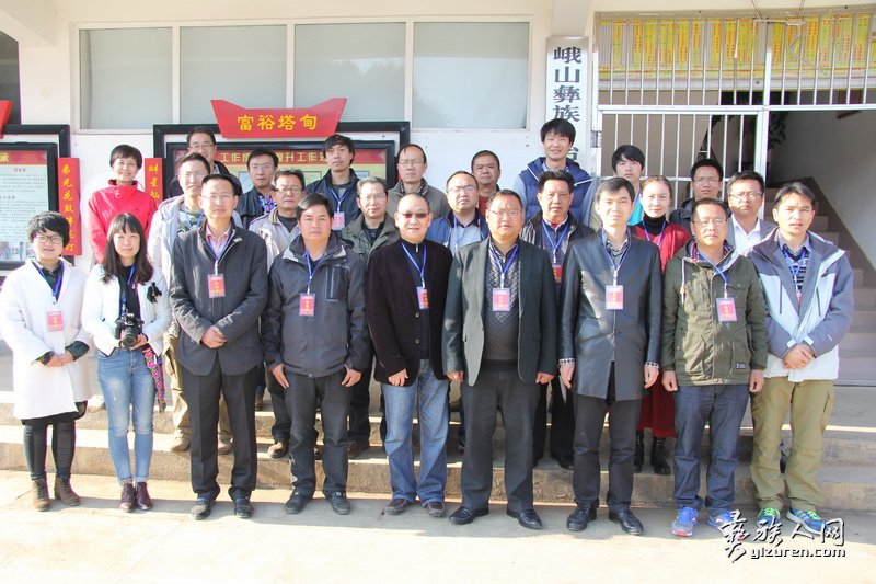 上午8:30,在塔甸镇文化站会议室举行了研讨会开幕式。开幕式由云南师范大学黄龙光(彝名:诗纳倮乌)博士主持,中共峨山县委宣传部、峨山县文联、塔甸镇相关负责领导和与会专家学者共40余人出席了开幕式。开幕式上,首先由塔甸镇党委书记施仲彪发表了热情洋溢的欢迎辞,他向参会专家学者表达了感谢和欢迎,邀请他们为塔甸镇的经济、文化和社会全面发展出谋划策给予指导。随后,中共峨山县委宣传部副部长巴雄运发表了讲话,他指出峨山从农业大县向文化强县发展的过程中,需要大力发展民族文化,希望参会专家学者献计献策,共商峨山发展大计。然后,楚雄师范学院人文学院院长曹晓宏教授发言,他指出,峨山的彝族文化底蕴深厚,但需跨越式发展,物质经济发展了之后,文化的发展尤为重要,在地方的城镇化过程中“人的城镇化”非常重要,需大力发展彝族文化。最后,参加开幕式的领导和专家学者合影。