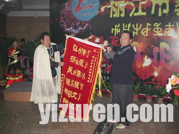 丽江彝学学会会长杨文彬代表学会接受了云南彝学会、凉山彝学会等单位的贺礼,并向学会顾问颁发了聘书。