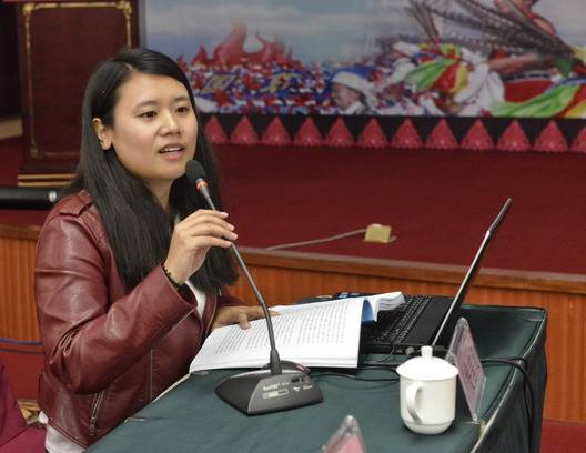 峨山县政法委黄丽蓉作了题为《彝族花鼓舞的流变、价值与传承发展路径》的发言,指出彝族花鼓舞从空间、数量、功能的流变过程,彝族花鼓舞具有历史价值、文化价值与社会价值,要从规划设计、人才培养、平台搭建、艺术创作等方面统筹发力,才能促成彝族花鼓舞内生新的动力。