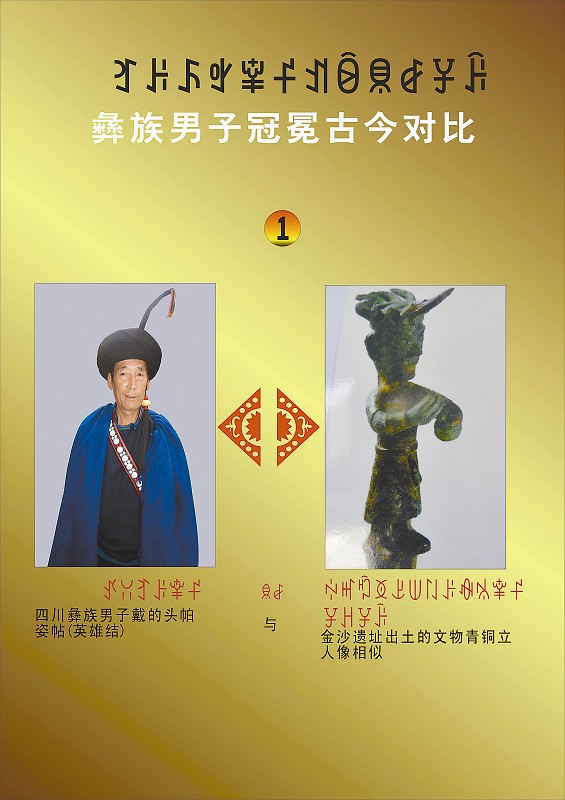 四川彝族男子戴的头帕姿帖(英雄结)与金沙遗址出土的文物青铜立人像相似