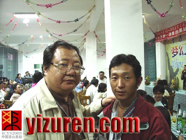 2005年8月21日晚,“诗意美姑”国际笔会乡语歌诗唱诵酒会在美姑宾馆的酒店举行。酒会由西南民族大学教授、彝族母语诗领军人物阿库乌雾主持,西南民大研究生许会荣做英语主持。