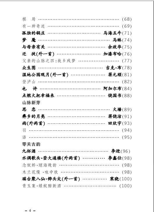 由越西县文化馆主办、阳光山脉诗社承办的纯诗歌刊物《铧头尖》诗歌季刊近日出版。该诗刊由越西县人民政府副县长陈玉蓉撰写序言,越西籍著名彝族美术家阿古扎摩设计封面。诗刊设置“名家风采、社长推荐、山脉诗群、巂外来风、山脉新芽、零关古韵”等六个栏目,选发了40多名诗歌作者的70余首诗歌。《铧头尖》诗刊的出版,是越西奋力推进“文化强县”战略的具体体现,为传承文昌文化文脉、增进内部及与各地的文化交流提供了新平台。